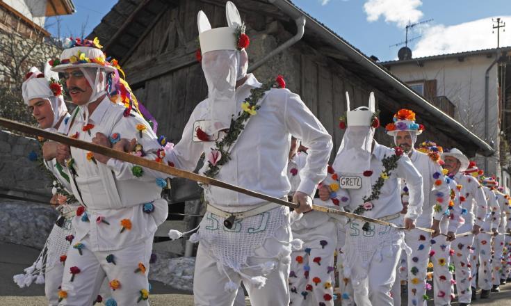 Ieder jaar vindt er op de Prato allo Stelvio/Prad am Stilfserjoch een ceremonie plaats die uniek is in het hele Alpengebied. We hebben het over het traditionele gemaskerde bal, het “Maschgertanz”, waar elegante, uitbundige koppels met carnavalmaskers op van het ene café naar het ander dansen met precies gechoreografeerde passen. Iedereen die ze onderweg tegenkomen houden ze voor de gek. Zodra de gemaskerde dansers een café binnengaan, kondigt de “Bajaz”, een soort clown, de voorstelling aan. Hij draagt een geruit pak, een witte kraag en een punthoed versierd met kleurige linten en bloemen, hij zwaait met een stok op de maat van de muziek, die meestal wordt gespeeld op een accordeon.